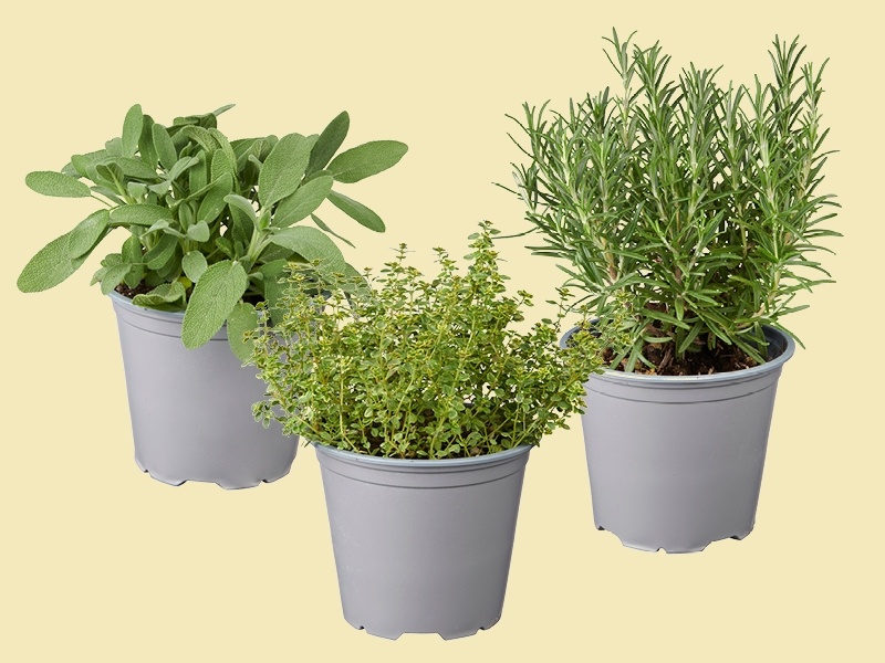 Rozemarijn is zo’n kruid dat je gewoon in huis wilt hebben. De smalle, stevige blaadjes blijven het hele jaar mooi groen en in het voorjaar verschijnen er subtiele bloemetjes in wit tot zacht paarsblauw. Een volwassen plant kan flink uitgroeien, dus regelmatig snoeien is geen overbodige luxe.